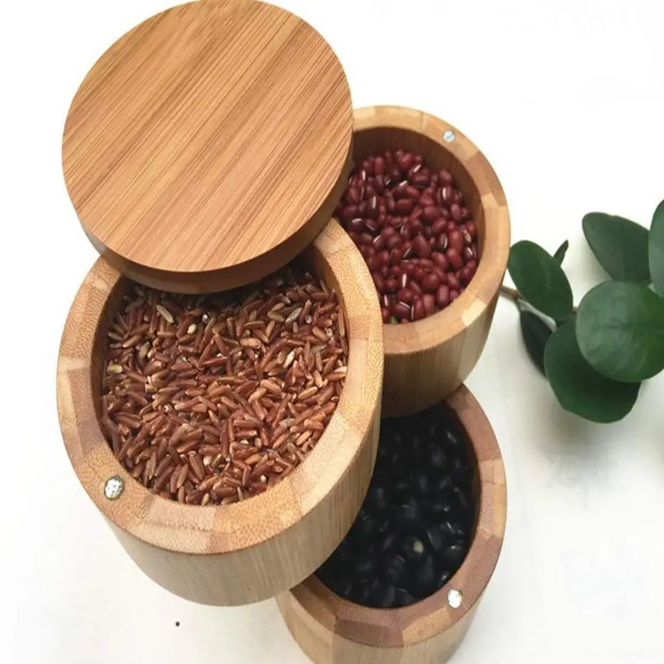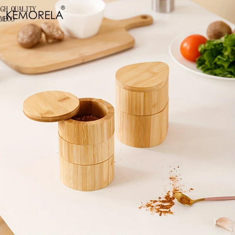Elegant Organization for Every Seasoning Elevate your culinary space with our 3-Tier Bamboo Salt & Spice Box. This beautiful, vertically stacked container is designed to keep your favorite gourmet salts, dried herbs, and specialty seasonings perfectly organized and accessible. Crafted from 100% natural bamboo, it adds a warm, organic touch to your countertop while providing a functional solution for high-frequency cooking.